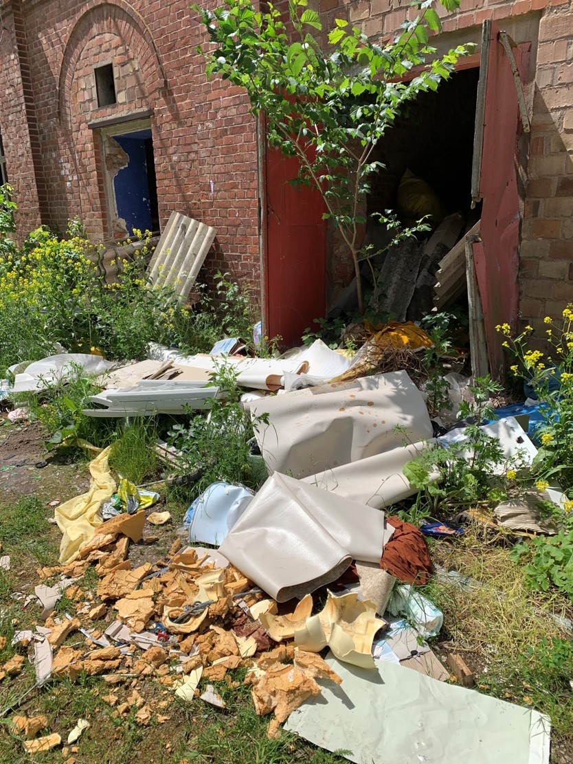 Die Menge der abgelagerten Abfälle könne „nur schwer auf mehrere Tonnen eingeschätzt werden.“ Bekannt sei aber tatsächlich, dass sich asbesthaltige Abfälle auf dem Gelände befinden. Andere gefährliche Abfälle konnten nicht festgestellt werden. Man schätzt, dass für die Beräumung und Entsorgung Kosten im unteren fünfstelligen Bereich entstehen.