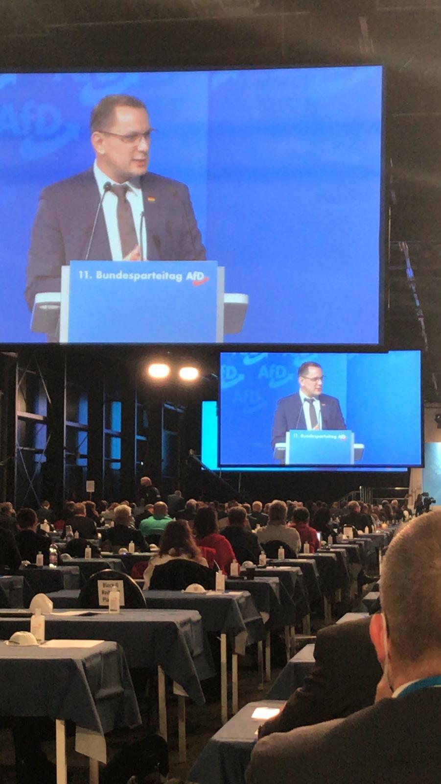 Am 11. Bundesparteitag der AfD nahmen für den Regionalverband die Delegierten Andreas Leupold, Jörg Prophet, Torsten Stange und Axel Haake (Stellvertretung) teil. Zusammen mit über 500 anderen Mitgliedern haben wir mit 88,6 Prozent Zustimmung ein hervorragendes Sozialprogramm verabschiedet und mit Carsten Hütter, Christian Waldheim und Joana Cotar drei tüchtige neue Mitglieder in den Bundesvorstand gewählt.