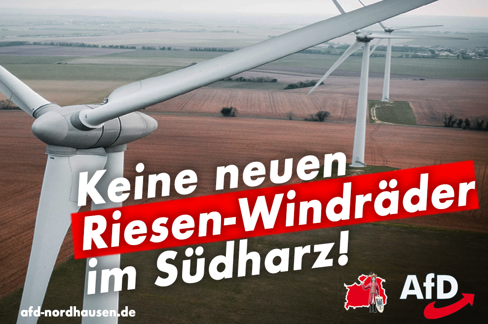 Am 13. Juli 2021 ging es im Kreistag um den Bau von zwei großen Windkraftanlagen am Standort Nentzelsrode. Bis auf die AfD stimmten alle Fraktionen für den Neubau (Bürgerliste Südharz enthielt sich).
